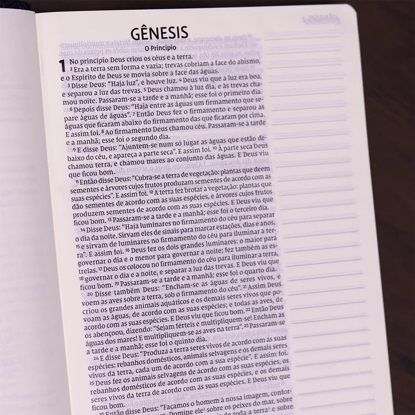 Quantas vezes estamos na igreja e ouvimos algo tão tocante que queremos registrar, mas não podemos porque não temos onde anotar? Você até gostaria de escrever na própria Bíblia, para que aquela informação complementasse seus estudos bíblicos, mas ela não tem espaço. Esta Bíblia chegou para resolver esse problema. Pensada para você que gosta de registrar comentários e anotações que enriqueçam a compreensão do texto bíblico, Sua Bíblia foi elaborada, agora em letra grande e com textos dispostos em coluna única, para incluir anotações sem prejudicar a leitura das Escrituras. Com papel diferenciado que dá mais destaque às suas anotações e mais visibilidade ao texto, graças à fonte Leitura Perfeita, especialmente desenvolvida pela Thomas Nelson Brasil, esta é a ferramenta ideal para aqueles que desejam aprofundar seu relacionamento com a Palavra.